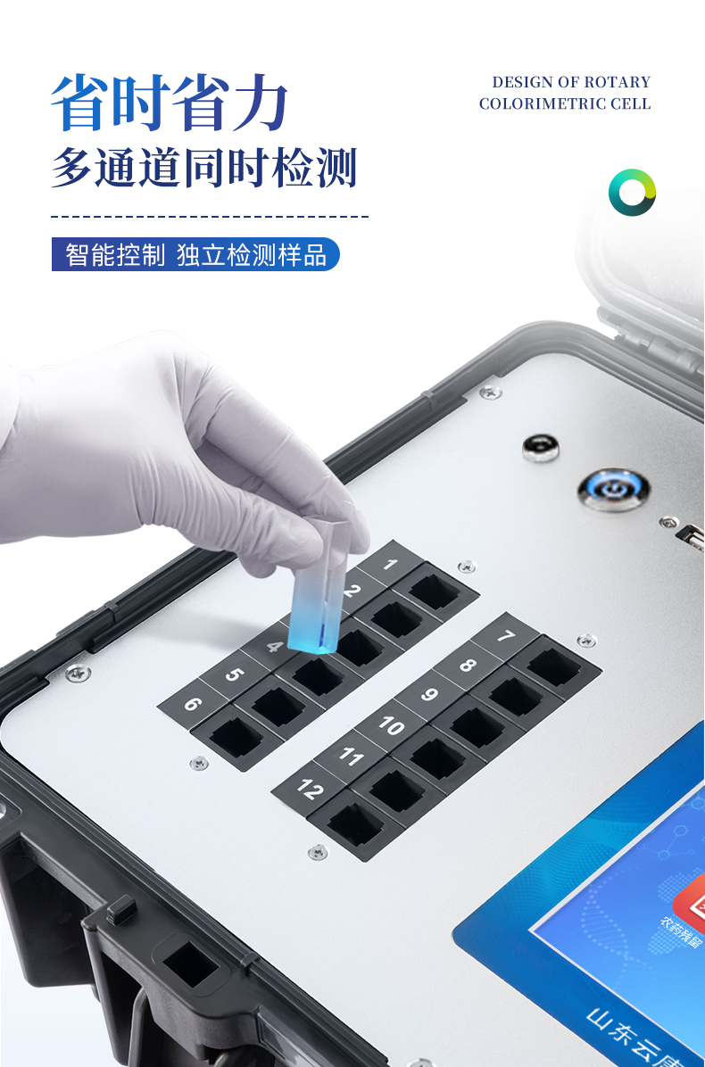 將比色瓶搖晃5次左右,倒入比色皿。將比色皿放入指定的通道中,點擊“樣品”鍵,平板顯示樣品結(jié)果。