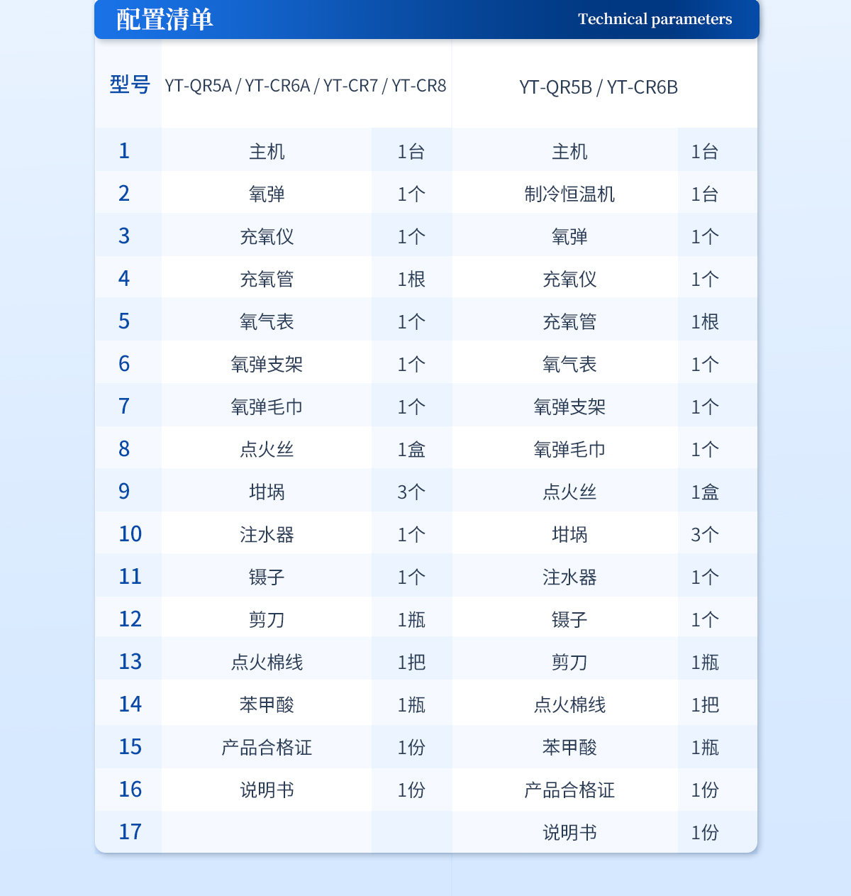 | 主機(jī) 1臺 | 氧彈 1個 | 充氧儀 1個 | 充氧管 1根 | 氧氣表 1個 | 氧彈支架 1個 | 氧彈毛巾 1個 | 點火絲 1盒 | 坩堝 3個 | 注水器 1個 | 鑷子 1個 | 剪刀 1瓶 | 點火棉線 1把 | 苯甲酸 1瓶 | 產(chǎn)品合格證 1份 | 說明書 1份 |