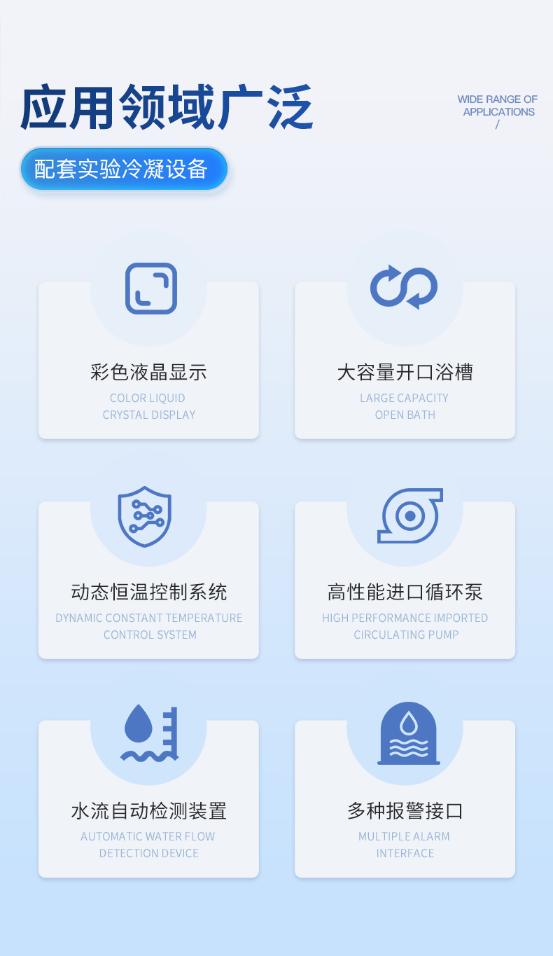 | 1.制冷量達3000w; | 2.體積緊湊,長壽耐用,操作便捷; | 3.溫控精度可達士0.3℃; | 4.激光冷水機智能溫控器具有兩種溫控模式,適用于不同的使用場合;有多種設定和故障顯示功能; | 5.具有多種報警保護功能:壓縮機延時保護、壓縮機過流保護、水流保護、溫度超限報警; | 6.可選配10-48m各種揚程水泵,供水量供水壓力有保障; | 7.可選配加熱器和凈化水質配置; | 8.可選多國電源規(guī)格,CE\RoHS、REACH認證。 |