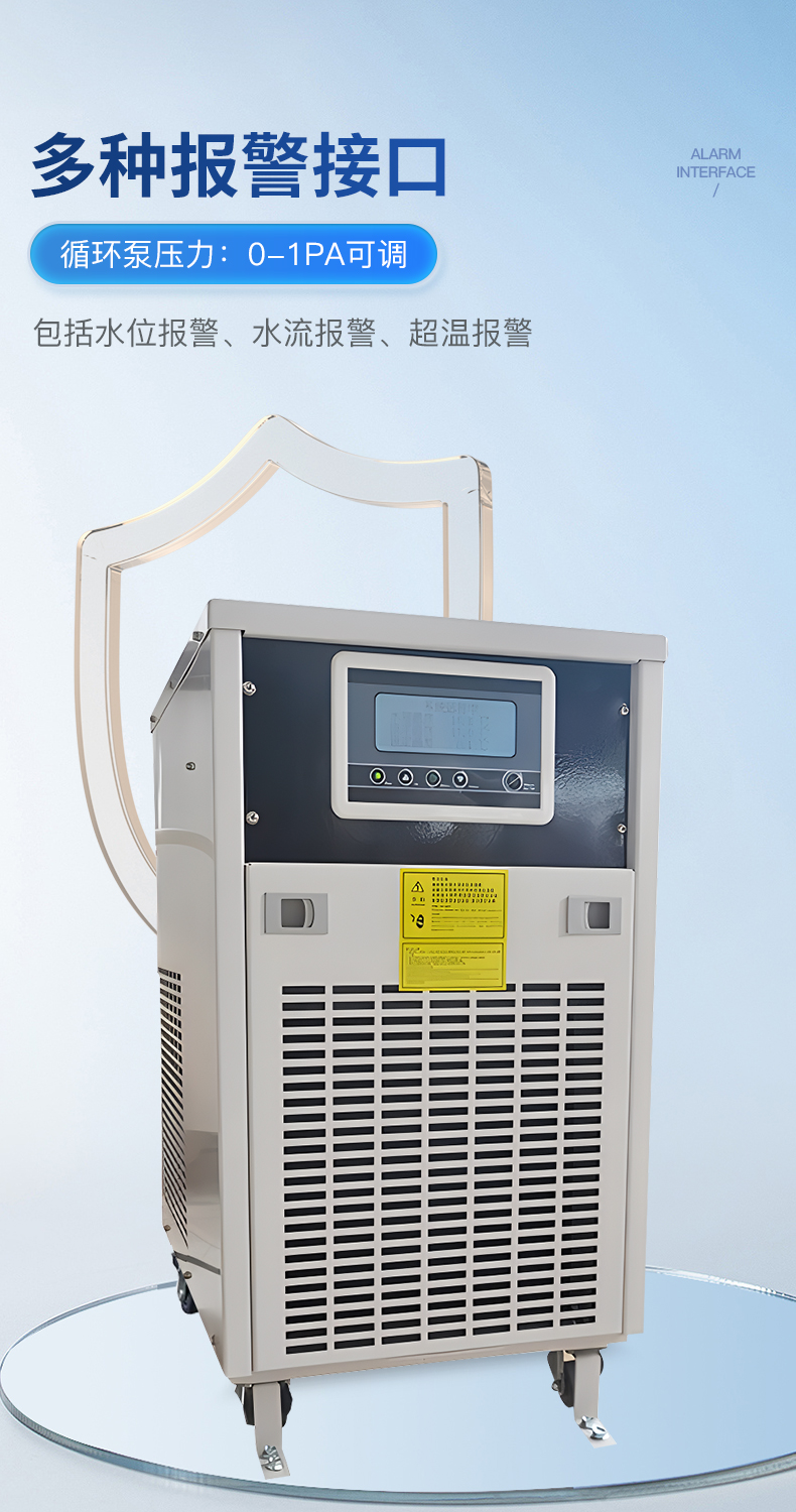 簡介:主要特點:1.制冷量達3000w;2.體積緊湊,長壽耐用,操作便捷;3.溫控精度可達士0.3℃;4.激光冷水機智能溫控器具有兩種溫控模式,適用于不同的使用場合;有多種設定和故障顯示功能;5.具有多種報警保護功能:壓縮機延時保護、壓縮機過流保護、水流保護、溫度超限報警;6.可選配10-48m各種揚程水泵,供水量供水壓力有保障;7.可選配加熱