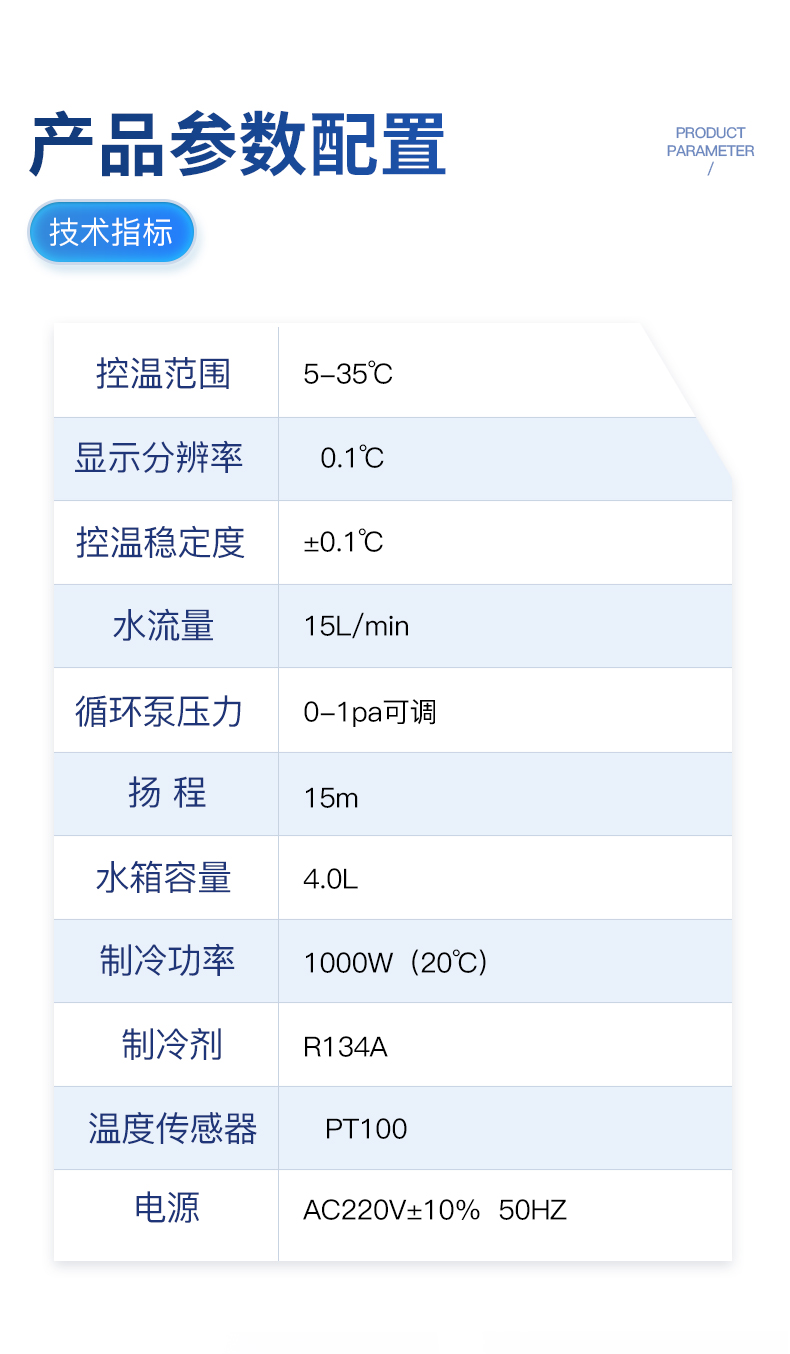 | 電壓:220V AC | 頻率:50HZ | 工作電流:3.2-8.6A | 壓縮機功率:1050W/1.2HP | 制冷量:3KW±5% | 冷媒充注量:R410a/480g | 節(jié)流器:毛細管 | **揚程:15m | **流量:12L/min | 水泵功率:55瓦 | 出水口:φ10銅咀寶塔(默認) | 水箱容量:9L | 尺寸:長*寬*高740*480*840mm | 凈重:65Kg | 保護:水流保護、水溫超高報警、水溫超低報警、壓縮機過載保護、室溫超高報警 |