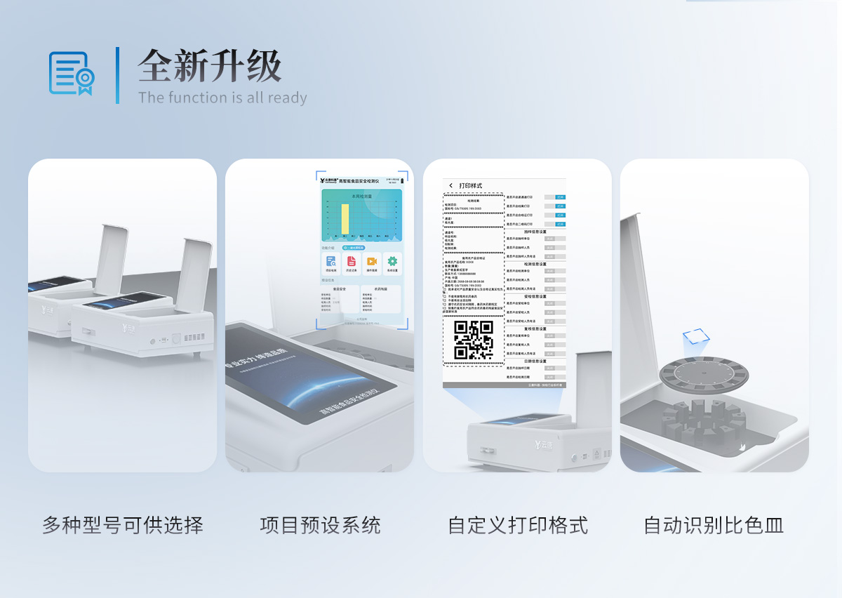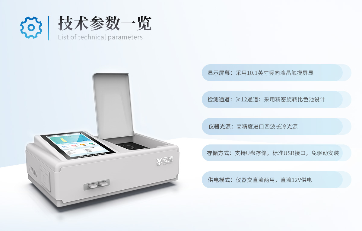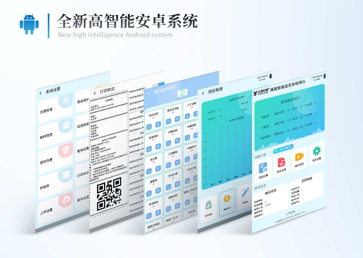 儀器采用臺(tái)式一體化系統(tǒng)檢測(cè)技術(shù),將分光光度模塊、膠體金檢測(cè)模塊、新型農(nóng)殘檢測(cè)模塊、數(shù)字化管理模塊、無(wú)線通訊模塊高度集成于一體,支持檢測(cè)200種食品安全檢測(cè)項(xiàng)目,同時(shí)預(yù)留升級(jí)檢測(cè)方法。 | 儀器檢測(cè)模塊標(biāo)準(zhǔn)化、智能化,可隨意自由組合。檢測(cè)箱體內(nèi)置多個(gè)標(biāo)準(zhǔn)檢測(cè)單元,檢測(cè)模塊可以調(diào)整配置。 | 儀器采用全新安卓智能系統(tǒng),主控芯片采用 ARM Cortex-A7,RK3288/4核處理器,10.1寸高清液晶觸摸豎屏,更加**的UI交互界面,運(yùn)轉(zhuǎn)快捷;儀器配備無(wú)線通信模塊: 4G(APN)通訊模塊、Wifi模塊,藍(lán)牙傳輸,同時(shí)具有雙USB接口以及RJ45接口能以多種方式實(shí)現(xiàn)數(shù)據(jù)保存和數(shù)據(jù)傳輸功能。 | 創(chuàng)新檢測(cè)模式★檢測(cè)通道:≥12通道;采用精密旋轉(zhuǎn)比色池設(shè)計(jì),使用同芯片同光源校準(zhǔn)精度,解決不同光源之間的誤差值。1-12通道間誤差0.1%。(**號(hào):**202022821055.2) ★儀器具有自動(dòng)識(shí)別比色皿檢測(cè)功能,即:將樣品比色皿放入儀器后,點(diǎn)擊樣品檢測(cè),儀器自動(dòng)識(shí)別比色皿進(jìn)行通道檢測(cè)。 | 進(jìn)口高精光源:高精度進(jìn)口四波長(zhǎng)冷光源,通道配置 410、520、590、630nm 波長(zhǎng)光源,一個(gè)光源芯片驅(qū)動(dòng)一個(gè)光源,誤差極小,每臺(tái)設(shè)備單獨(dú)**校準(zhǔn)光源,**比對(duì),同時(shí)參照四種不同波段光源全方位覆蓋市面上99%的農(nóng)殘食品項(xiàng)目檢測(cè)。 | 膠體金模塊檢測(cè)方式:★采用COMS實(shí)時(shí)成像技術(shù),可采集多個(gè)畫面,支持2個(gè)金標(biāo)同時(shí)讀卡,通過(guò)不同顏色的灰度變化,一秒精準(zhǔn)得出結(jié)果。 | 智能操作分析系統(tǒng): | ★便捷操作系統(tǒng):設(shè)備檢測(cè)時(shí)可在同一檢測(cè)界面自動(dòng)對(duì)應(yīng)相關(guān)檢測(cè)通道一次性選擇1-12個(gè)樣品名稱,無(wú)須退出界面,節(jié)省操作時(shí)間。(需提供對(duì)應(yīng)證明) | ★數(shù)據(jù)集成系統(tǒng):設(shè)備首頁(yè)自動(dòng)統(tǒng)計(jì)檢測(cè)數(shù)據(jù)包含:周檢測(cè)數(shù)據(jù)、月檢測(cè)數(shù)據(jù),全部檢測(cè)總數(shù)量,均包含檢測(cè)總數(shù),合格數(shù),不合格數(shù),以及相關(guān)柱形分析圖,對(duì)各項(xiàng)檢測(cè)數(shù)據(jù)清晰掌握,無(wú)需電腦查詢,更加快捷直觀。(需提供對(duì)應(yīng)證明文件) | ★項(xiàng)目預(yù)設(shè)系統(tǒng):支持添加單個(gè)及多個(gè)相同或不相同的任務(wù)預(yù)設(shè),一鍵快速調(diào)取,每一個(gè)任務(wù)分別可以設(shè)置不同的樣品、批次、編號(hào)、來(lái)源、備注、抽樣信息、檢測(cè)信息、受檢信息、復(fù)核信息等更多信息。無(wú)縫鏈接平臺(tái)和APP實(shí)時(shí)查看下發(fā)任務(wù)。(需提供對(duì)應(yīng)證明文件) | ★數(shù)據(jù)監(jiān)管系統(tǒng):同步對(duì)接監(jiān)管平臺(tái),數(shù)據(jù)可局域網(wǎng)和互聯(lián)網(wǎng)數(shù)據(jù)上傳,檢測(cè)結(jié)果可選擇直接傳至食品安全監(jiān)管平臺(tái)。集成OSS輸出存儲(chǔ)服務(wù)、區(qū)分設(shè)備定向管理應(yīng)用,進(jìn)行區(qū)域食品安全監(jiān)管及大數(shù)據(jù)分析處理與數(shù)據(jù)統(tǒng)計(jì),檢測(cè)區(qū)域食品安全長(zhǎng)短期動(dòng)態(tài),達(dá)到食品安全問(wèn)題預(yù)估、預(yù)警。(需提供對(duì)應(yīng)食品理化分析系統(tǒng)計(jì)算機(jī)軟件著作權(quán))。 | ★ 自定義打印系統(tǒng):內(nèi)置全新打印系統(tǒng),新創(chuàng)自定義打印方式,可按需靈活設(shè)置開啟或關(guān)閉:產(chǎn)品合格證(國(guó)家農(nóng)業(yè)部標(biāo)準(zhǔn)要求),二維碼,抽樣信息、檢測(cè)信息,受檢信息、復(fù)核信息、抽樣日期、檢測(cè)日期等信息的打印。(需提供對(duì)應(yīng)證明) | ★系統(tǒng)遠(yuǎn)程更新功能:可定向分客戶分儀器更新系統(tǒng),按照不同客戶后期實(shí)際需求添加項(xiàng)目,無(wú)需機(jī)器返廠,即可遠(yuǎn)程實(shí)時(shí)升級(jí)全新系統(tǒng),節(jié)省時(shí)間成本及避免運(yùn)輸造成設(shè)備損壞。 | 儀器主機(jī)采用一體化防水、抗壓、防撞擊、防腐蝕箱體設(shè)計(jì),同時(shí)配備交直流供電,可連接車載電源,可選配大容量充電鋰電池,滿足現(xiàn)場(chǎng)野外檢測(cè)需求。 | 安全證書,放心保障:儀器具有中國(guó)計(jì)量科學(xué)研究院校準(zhǔn)證書,權(quán)威認(rèn)證。 |