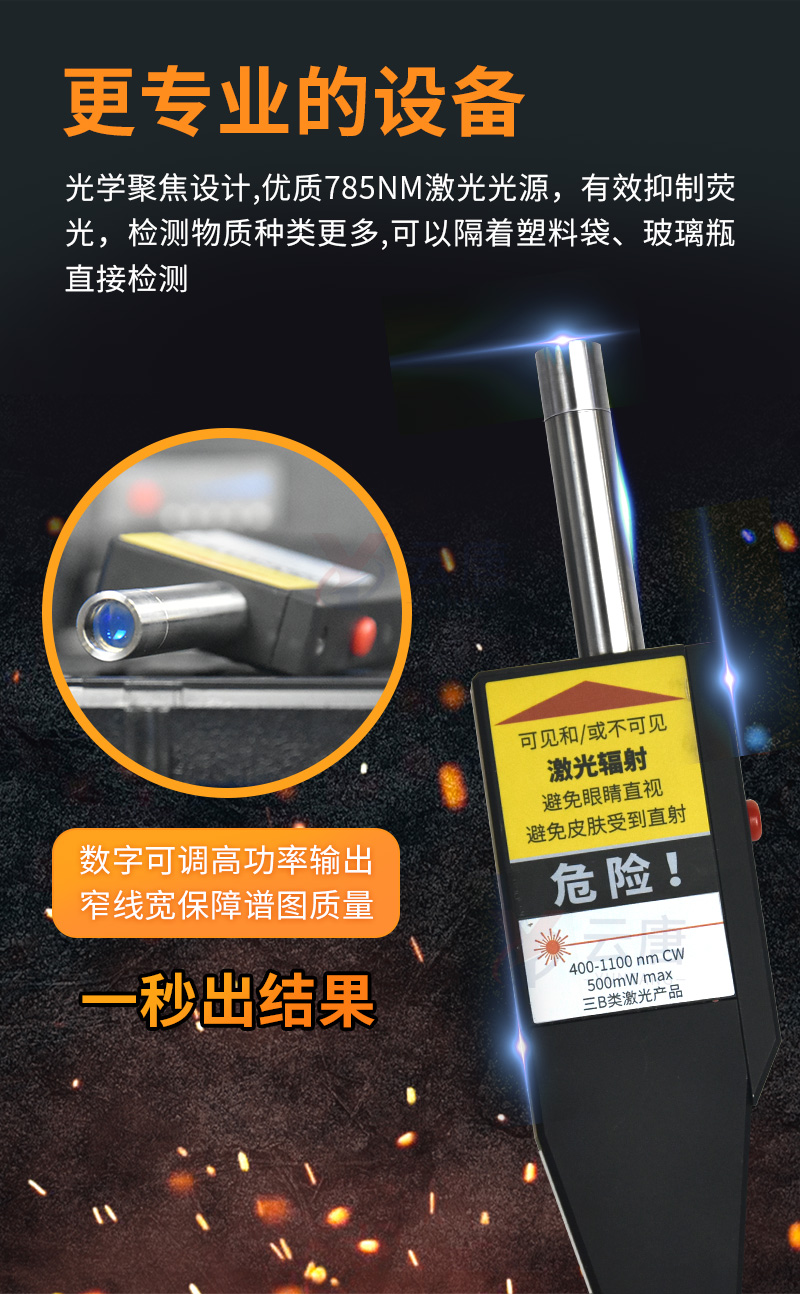 光學(xué)聚焦設(shè)計(jì):可以隔著塑料袋、玻璃瓶直接檢測(cè)
