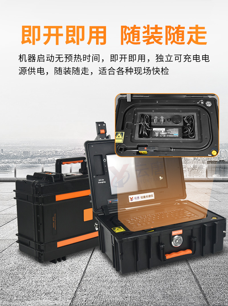 便攜式設(shè)計(jì):獨(dú)立可充電電源供電,隨裝隨走,適合各種現(xiàn)場(chǎng)快檢