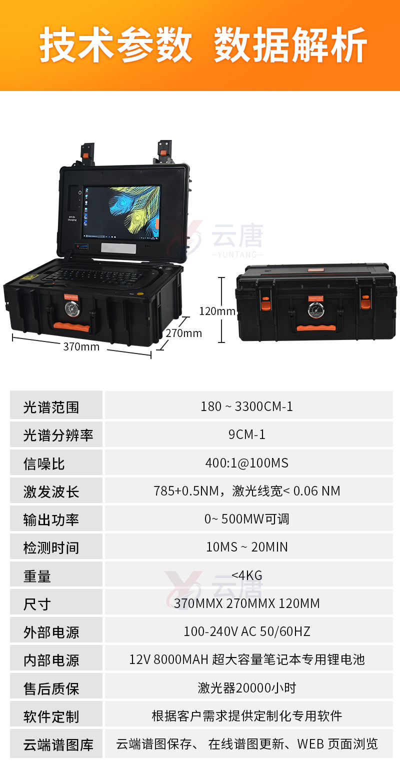 YT-LM是一款專門針對(duì)現(xiàn)場(chǎng)快速檢測(cè)的便攜式拉曼光譜分析儀,采用工業(yè)級(jí)的防水、防塵、防震、防摔設(shè)計(jì),適合各種惡劣環(huán)境下使用,可靠性、穩(wěn)定性更高。設(shè)備自帶操作系統(tǒng)和人性化軟件交互界面,集成了**的智能解譜和光譜分析算法,完全做到“一鍵操作”。