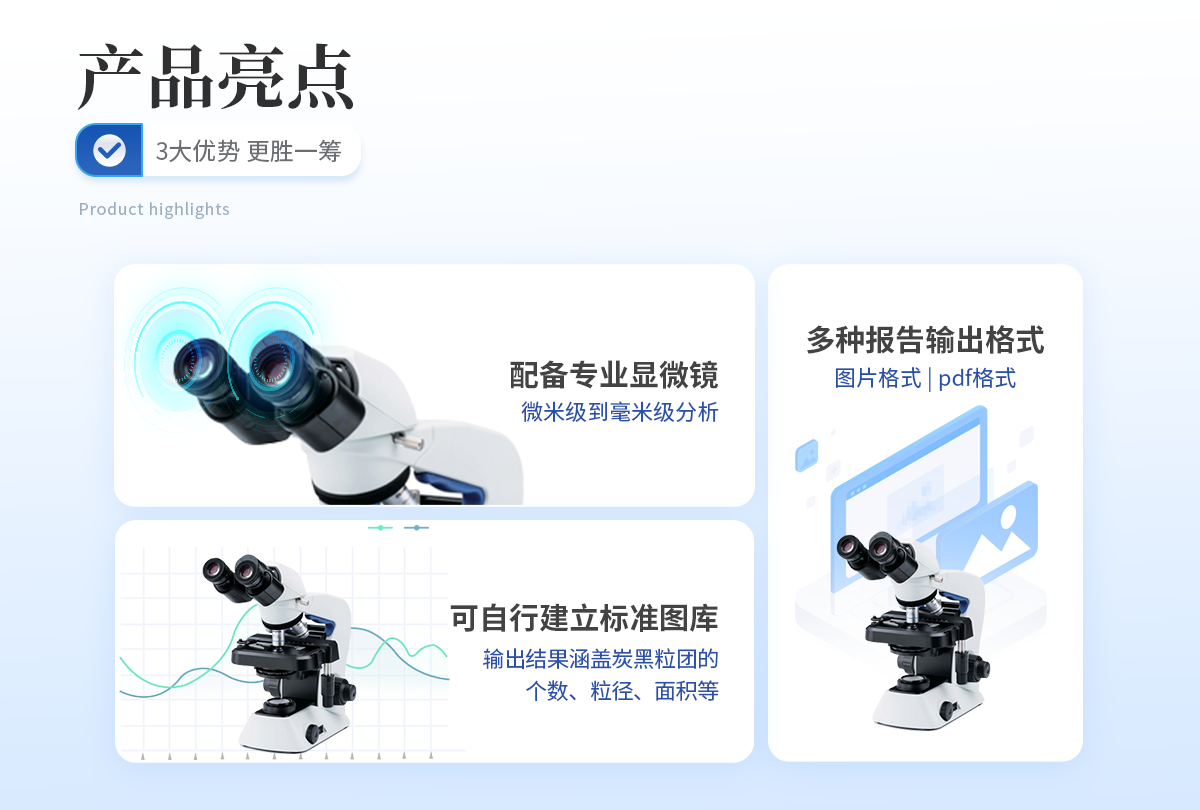 | 1. 采用專業(yè)圖像分析法由計算機完成炭黑分散度等級的判定,檢測精度高; | 2. 對目標(biāo)炭黑粒徑可從微米級到毫米級進行分析; | 3. 配備專業(yè)顯微鏡,配以500萬CMOS圖像傳輸器; | 4. 可單張保存圖像,圖像大小由640*480,1024*768,1280*1024,2592*1944四種大小可供選擇; | 5. 豐富的圖像處理功能,滿足多種圖像處理需要; | 6. 軟件具有自動和手動兩種方式進行炭黑圖像分割; | 7. 軟件可滿足對局部分析的要求; | 8. 配備測微標(biāo)尺,可進行像素點尺寸校準(zhǔn),并且軟件具有移動標(biāo)尺功能,可進行任意兩點距離測量; | 9. 根據(jù)橡膠中炭黑種類,建立了由ISO提供的標(biāo)準(zhǔn)圖庫,以滿足客戶的目測對比需求; | 10. 客戶可以自行建立標(biāo)準(zhǔn)圖庫; | 11. 輸出結(jié)果涵蓋炭黑粒團的個數(shù)、粒徑、面積等,并可以數(shù)據(jù)報表和excel的形式進行輸出; | 12. 提供圖像灰階分布圖、粒子徑分布圖、粒度分布圖; | 13. 報告結(jié)果包括:樣品名、標(biāo)準(zhǔn)名、原始圖像、灰階圖等。報告輸出格式多樣,可以選擇圖片格式或pdf格式進行保存; | 14. 軟件試用各種主流操作系統(tǒng),與win7/win10/winXP等有很好兼容性; | 15. 采用usb2.0數(shù)據(jù)接口,可適配多種采集設(shè)備(如:攝像頭或數(shù)碼相機)。 |